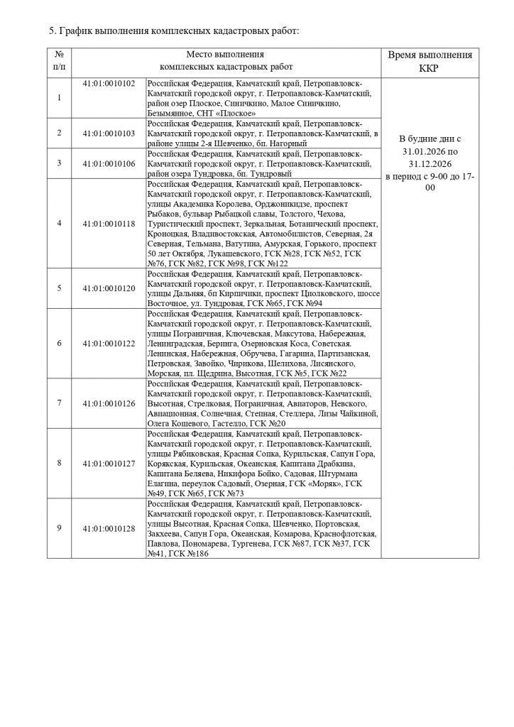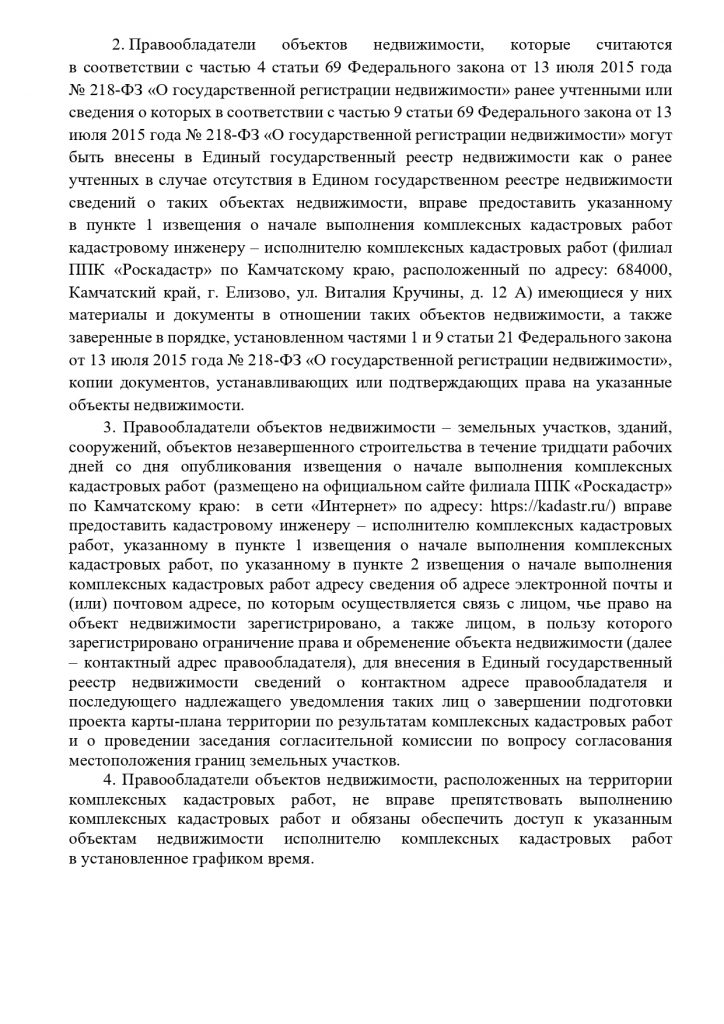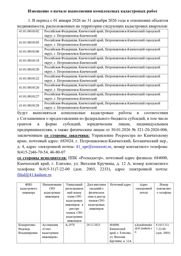 Извещение о начале выполнения комплексных кадастровых работ в период с 01 января 2026 по 31 декабря 2026 года